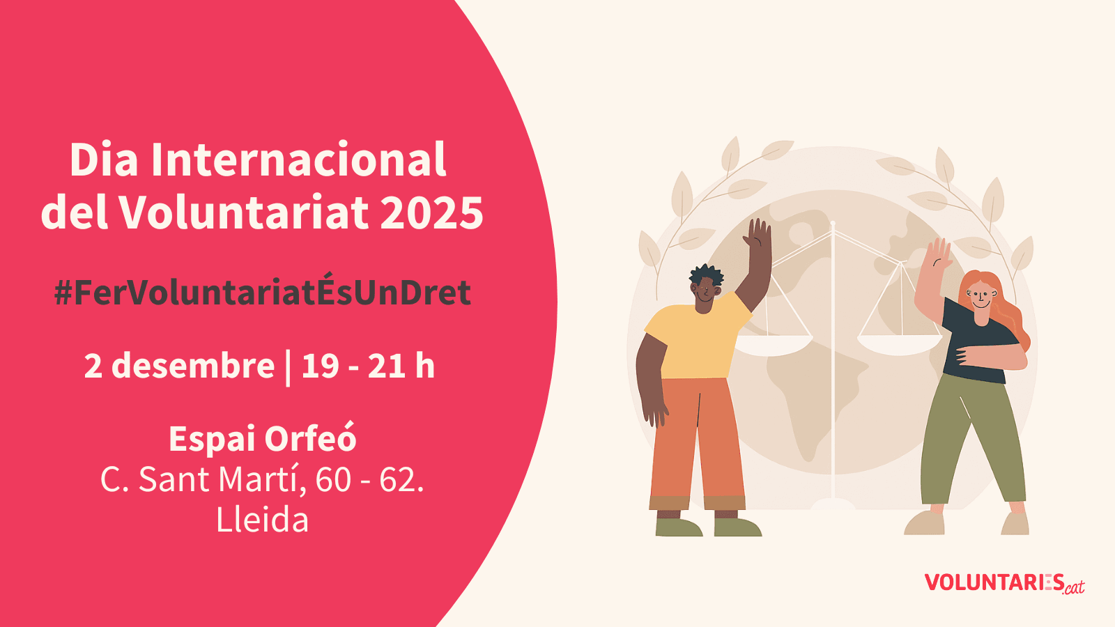En el marc del Dia Internacional del Voluntariat, 5 de desembre, la Federació Catalana de Voluntariat Social (FCVS) commemora aquesta data amb actes de celebració als quatre territoris sota el lema #VoluntariatÉsUnDret.